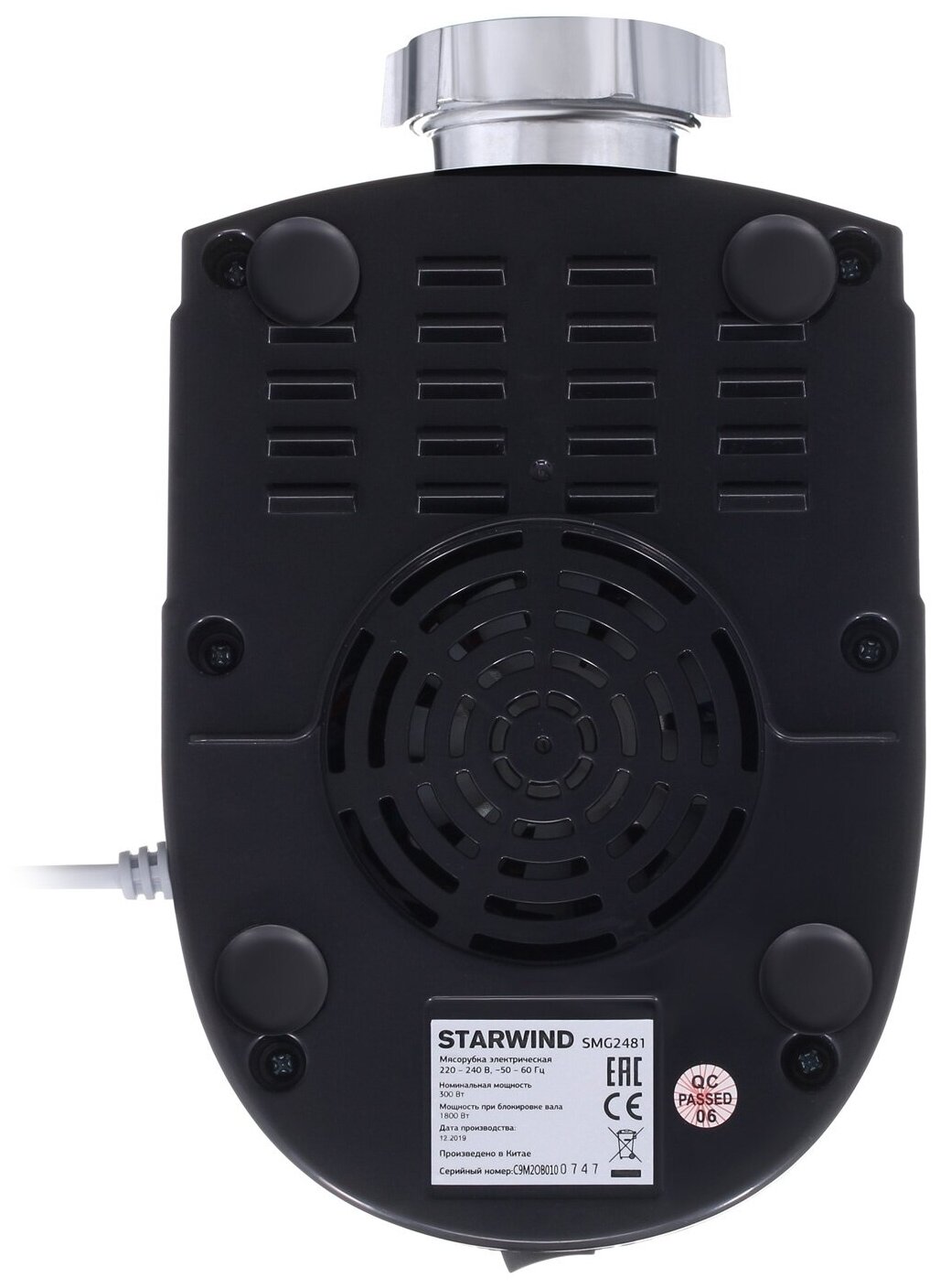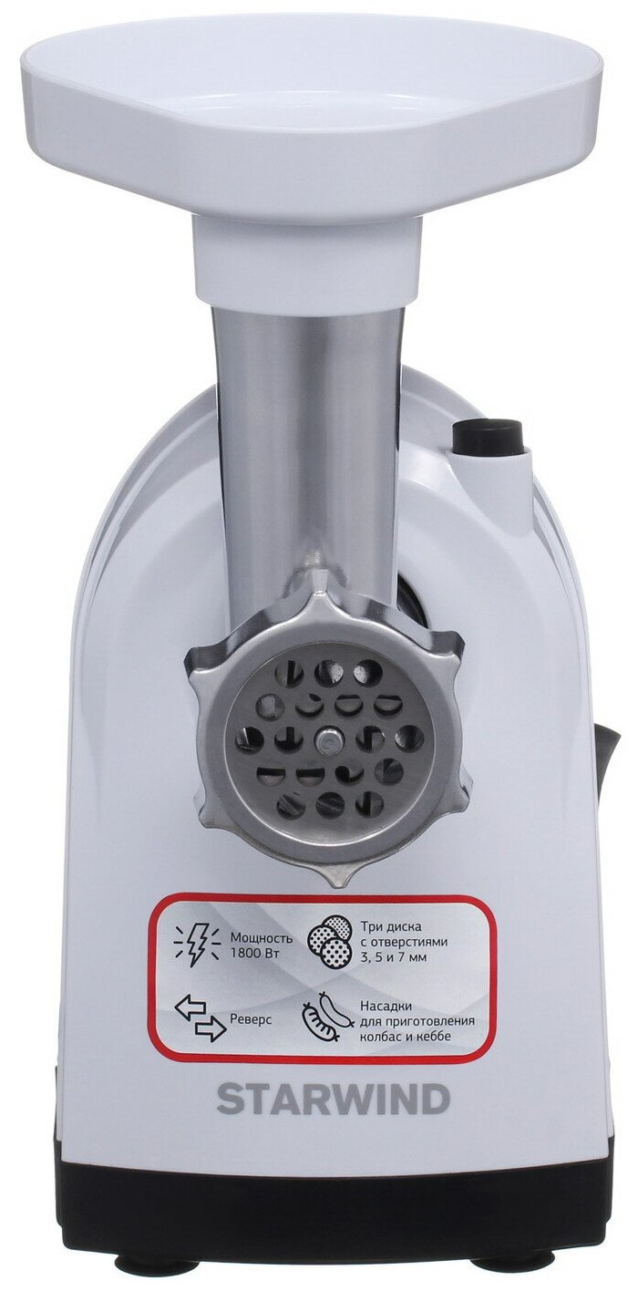 Rated power: 300 W, attachments: mince disc, kebbe attachment, sausage attachment, body material: plastic, reverse system, capacity: 2.20 kg/min, features: overload protection, washable