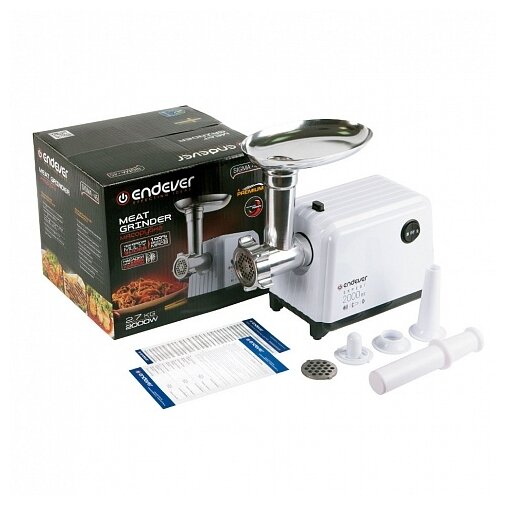 Nozzles: disk for minced meat, nozzle for kebbe, nozzle for preparing sausages, body material: plastic, reverse system, productivity: 2.70 kg/min, features: overload protection, dishwasher safe, etc.