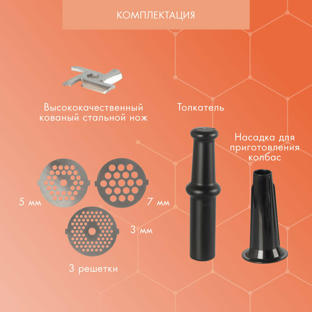 Rated power: 600 W, attachments: mince disc, kebbe attachment, sausage attachment, body material: plastic/metal, reverse system, capacity: 1.50 kg/min, features: overload protection�