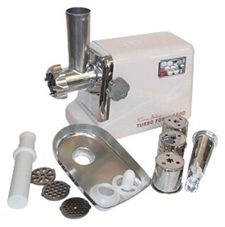 Attachments: minced meat disc, grater attachment, body material: plastic/metal, reverse system, features: compartment for power cord, rubberized feet, number of perforated discs: 3