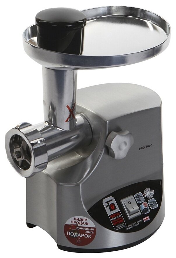 Rated power: 450 W, attachments: disk for minced meat, attachment for kebbe, attachment for preparing sausages, body material: metal, reverse system, capacity: 2 kg/min, features: overload protection, compartment
