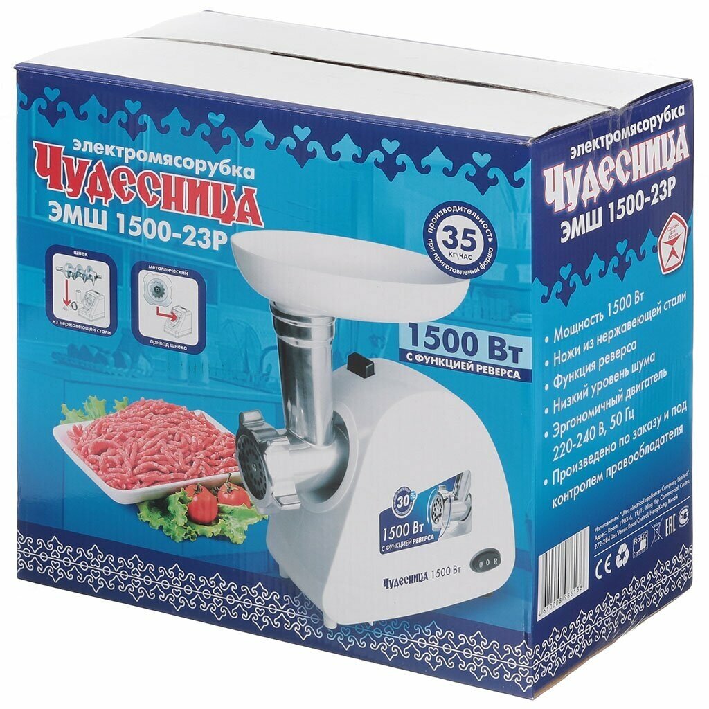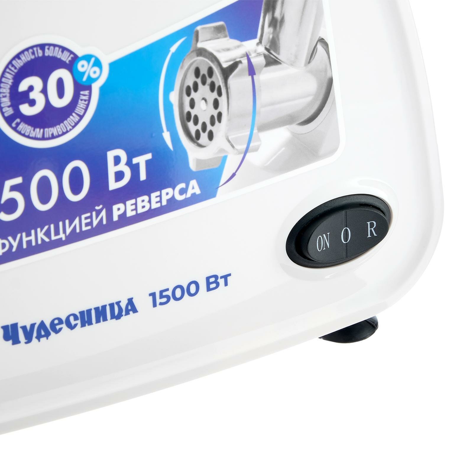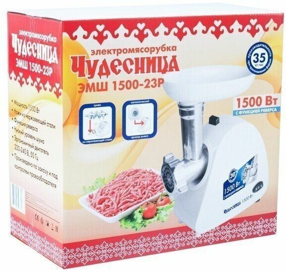 Rated power: 350 W, attachments: disk for minced meat, body material: plastic, reverse system, productivity: 0.60 kg/min, features: dishwasher safe, rubberized feet, number of perforated