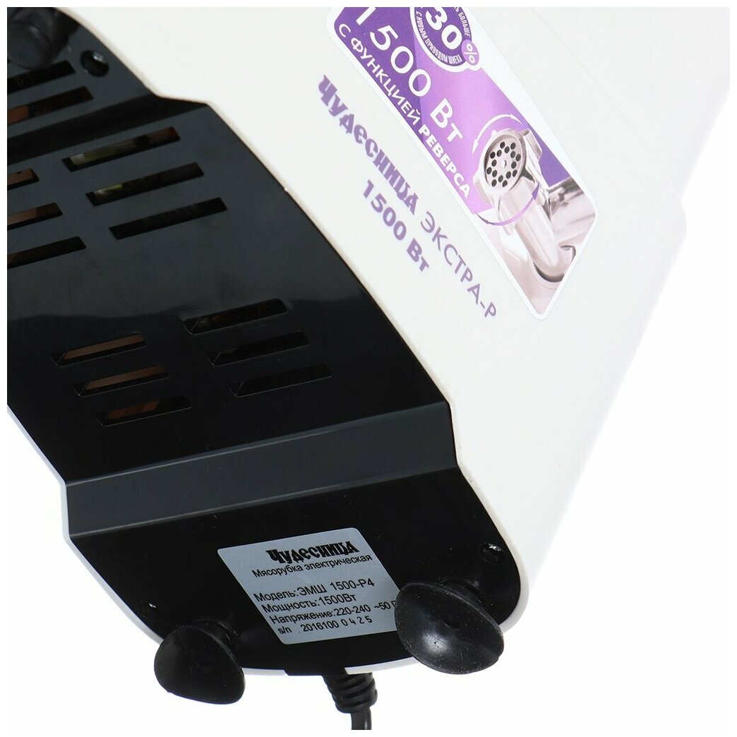 Nozzles: disk for minced meat, body material: plastic, reverse system, productivity: 0.60 kg/min, features: dishwasher safe, rubberized feet, number of perforated disks: 1