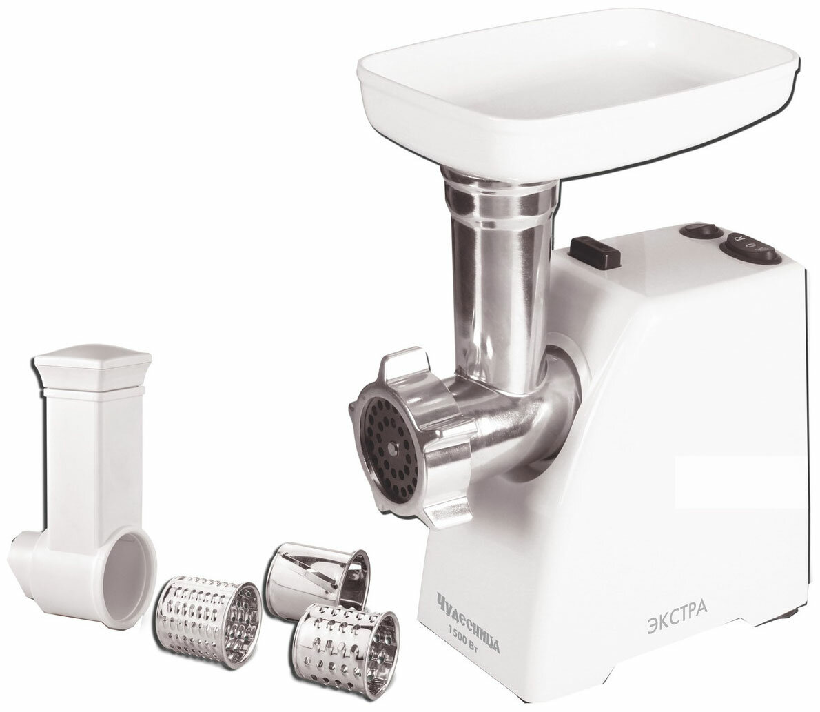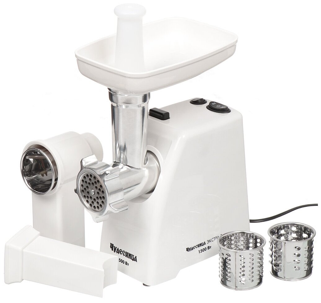 Attachments: minced meat disk, shredding attachment, grater attachment, body material: plastic, reverse system, productivity: 0.60 kg/min, features: dishwasher safe, rubberized feet