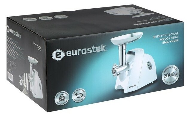 Description: Attachments: disk for minced meat, attachment for kebbe, attachment for preparing sausages, body material: plastic, reverse system, features: overload protection, compartment for storing attachments, rubberized feet, number of
