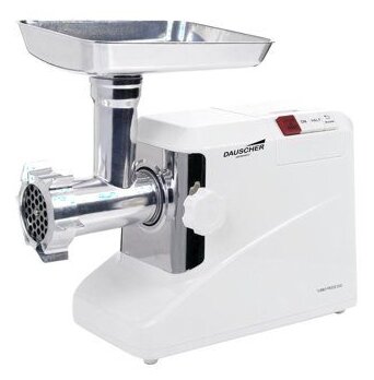 Nozzles: disk for minced meat, nozzle for cooking sausages, body material: plastic/metal, reverse system, features: overload protection, dishwasher safe, compartment for power cord, storage compartment