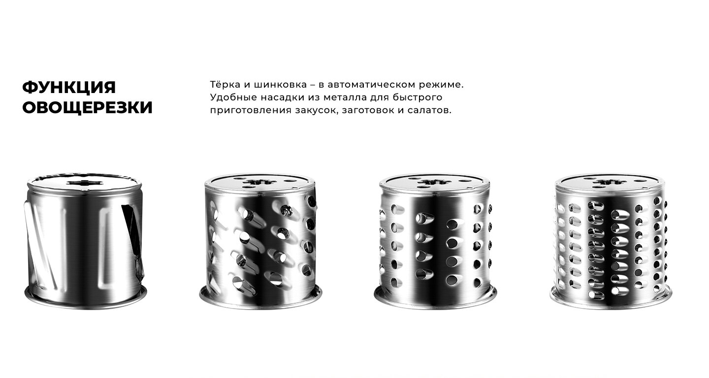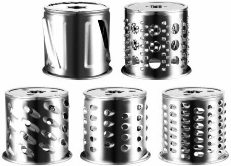 Nozzle for potato pancakes; tray material: metal; maximum cookware height: 120 mm; number of attachments for preparing sausages: 2; number of grater attachments: 4; number of shredding attachments: 1
