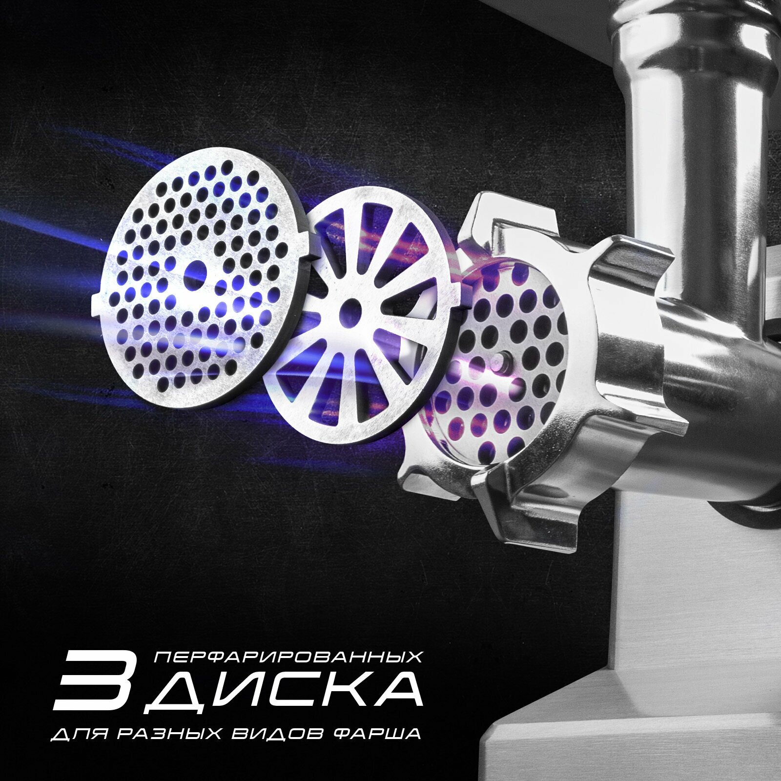 Nozzles: disk for minced meat, nozzle for kebbe, nozzle for preparing sausages, body material: metal, reverse system, productivity: 2.50 kg/min, features: overload protection, dishwasher safe, ots