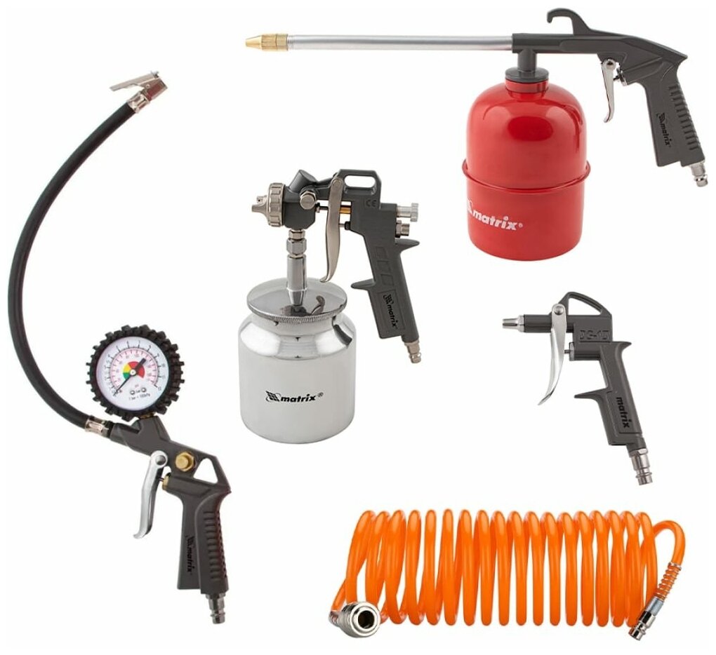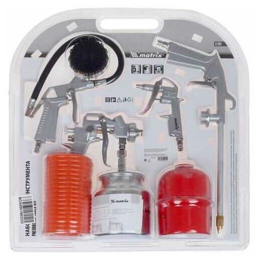 Equipment: Inflation gun with pressure gauge, blow gun, gun for viscous liquids, paint sprayer with 0.75 l lower tank, hose with quick connector 5 m.
