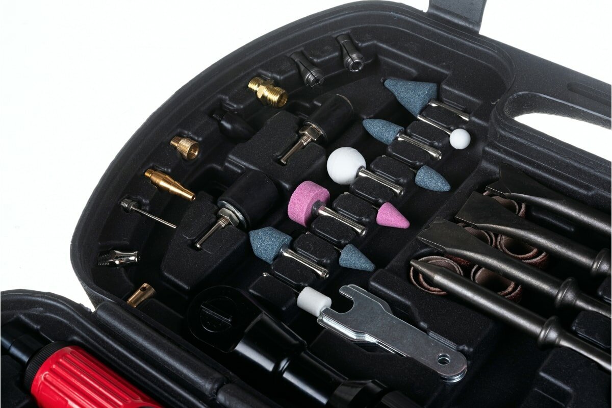 Pneumatic tools DEKO DKPT61 Premium 61 items in a suitcase Straight air grinder, air ratchet, air wrench, air hammer, blow gun, air gun + 55 accessories