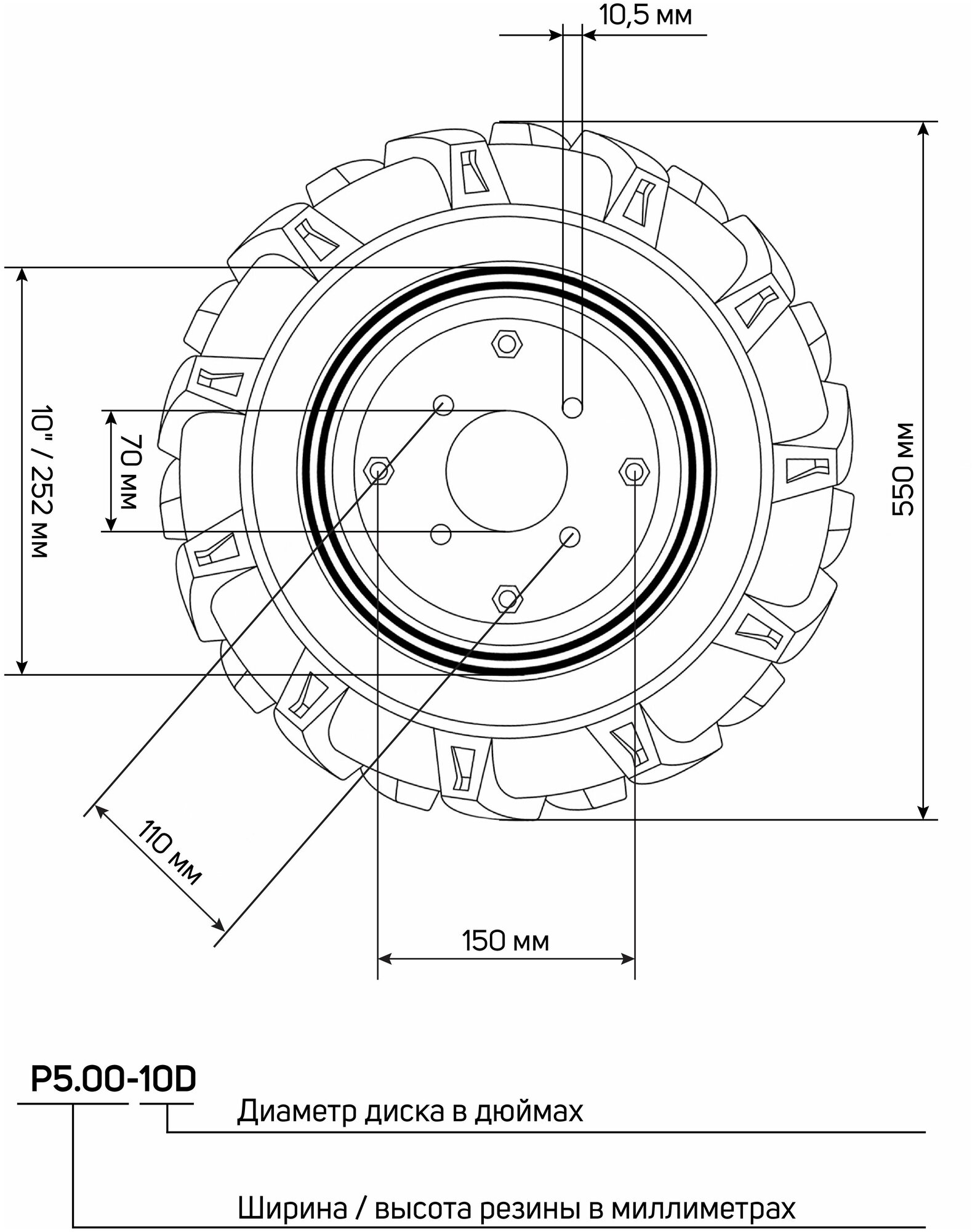 Type: wheel, purpose: for a cultivator, for a mini-tractor, for a walk-behind tractor, weight: 7.65 kg