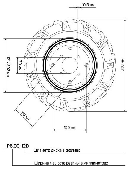 Type: wheel, purpose: for walk-behind tractor, garden equipment manufacturer: PATRIOT, width: 140 mm, diameter: 630 mm, weight: 13 kg