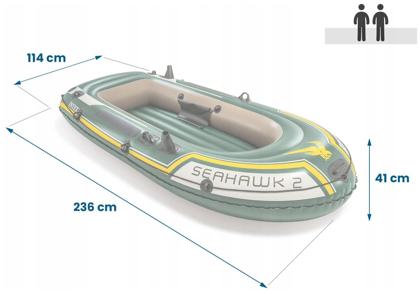 Type: rowing, number of seats: 2, bottom type: inflatable, boat material: reinforced PVC, load capacity: 200 kg, boat length: 236 cm, boat width: 114 cm, weight: 9 kg, transom: no