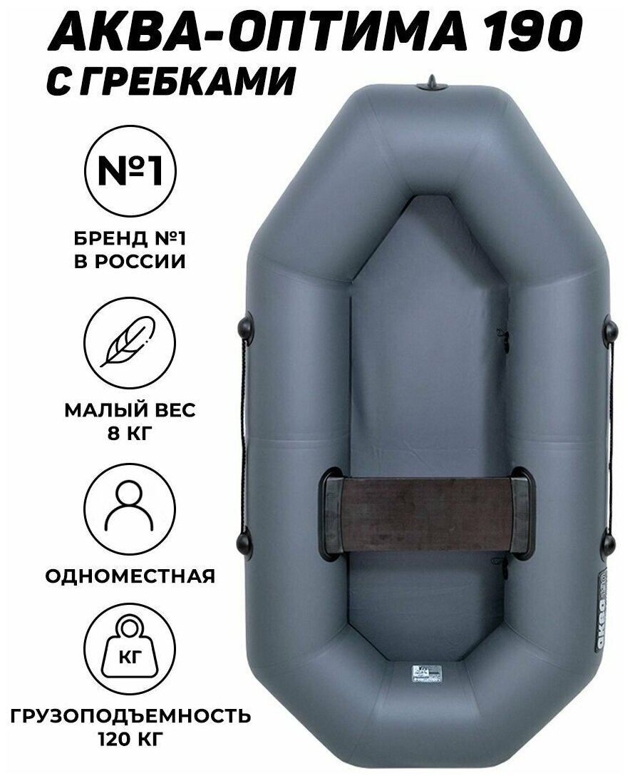 Type: rowing, number of seats: 1, bottom type: non-inflatable, floorboard type: not included, boat material: reinforced PVC, load capacity: 120 kg, boat length: 190 cm, boat width: 100 cm, weight: 7 kg, transom: missing