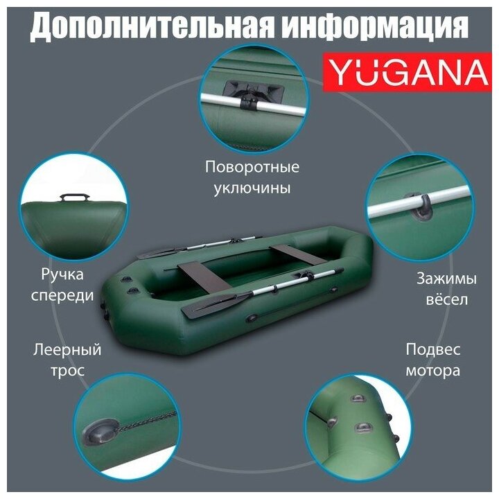 Type: rowing, number of seats: 2, bottom type: non-inflatable, load capacity: 220 kg, boat length: 280 cm, boat width: 130 cm, weight: 16 kg, transom: no
