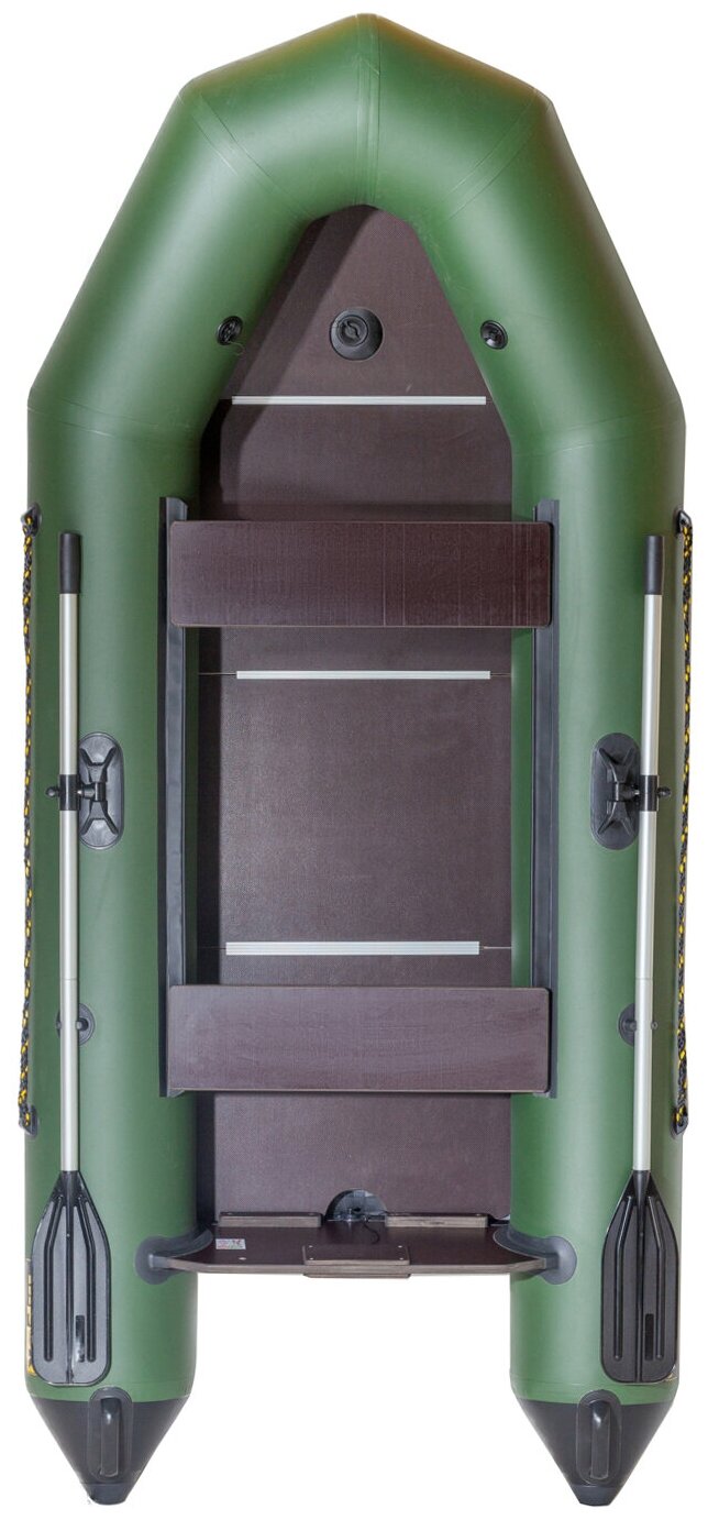 Type: motor-rowing, number of seats: 2, bottom type: non-inflatable, floorboard type: solid, load capacity: 220 kg, boat length: 271 cm, boat width: 127 cm, weight: 25 kg, maximum motor power: 4 HP. s., transom: built-in