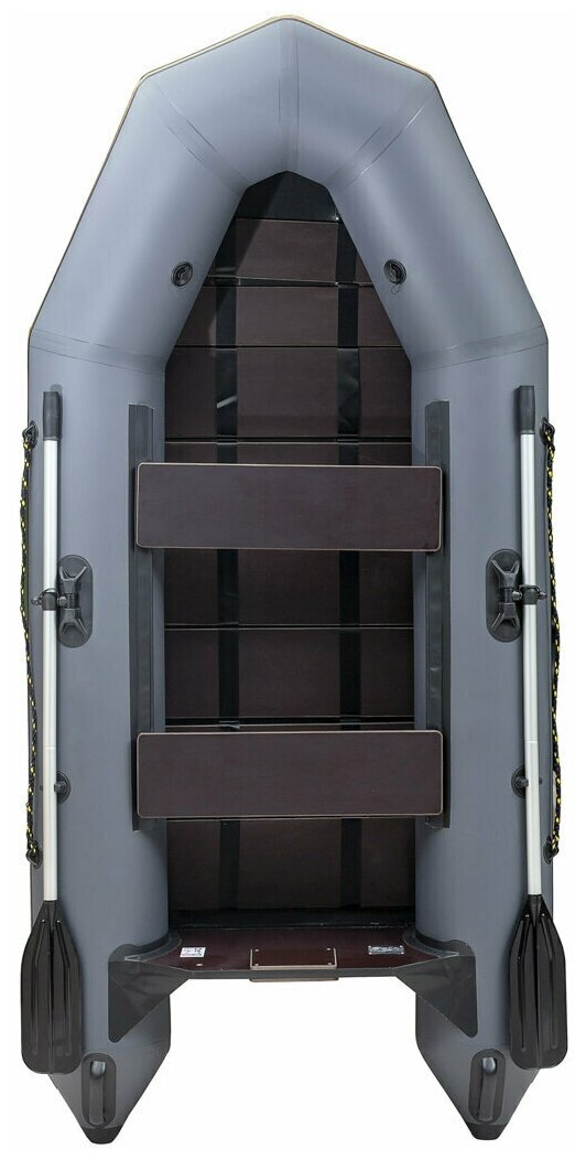 Type: motor-rowing, number of seats: 2, bottom type: rigid, floorboard type: rack, boat material: reinforced PVC, load capacity: 220 kg, boat length: 270 cm, boat width: 125 cm, weight: 27 kg, maximum motor power: 4 hp, t