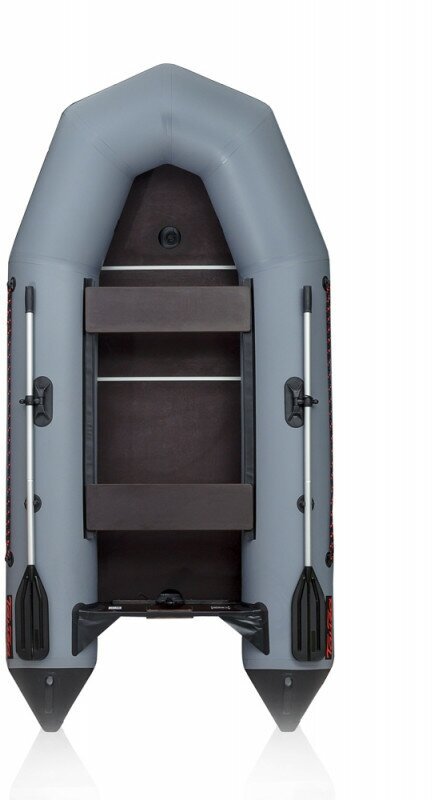 - detachable aluminum oars;<br/> - plywood bank seat on sliding fasteners 2 pcs;<br/> - solid plywood flooring with aluminum H-profile;<br/> - pump-pump 5 l;<br/> - repair kit;<br/> - transport packaging bag-envelope.