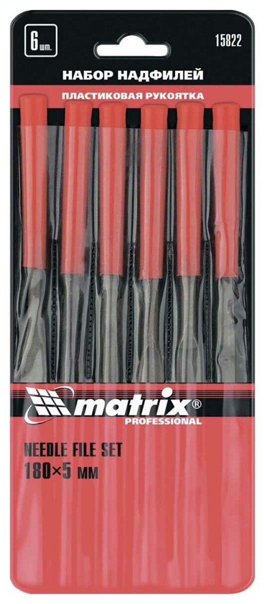 Type: needle file, package quantity: 6 pcs., processing material: for metal, total length: 180 mm, working part length: 80 mm, working part material: steel, handle material: plastic