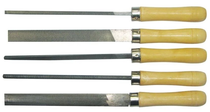 Type: file, package quantity: 5 pcs., processing material: for metal, working part length: 150 mm, working part material: steel, cut frequency: No. 1, handle material: wood
