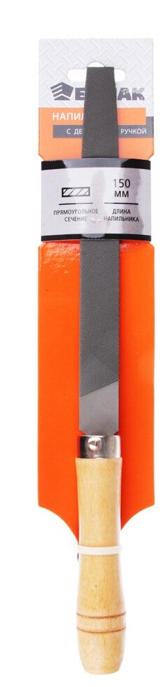Type: file, quantity per package: 1 pc., section shape: flat, working part length: 150 mm, cut frequency: №2, handle material: wood