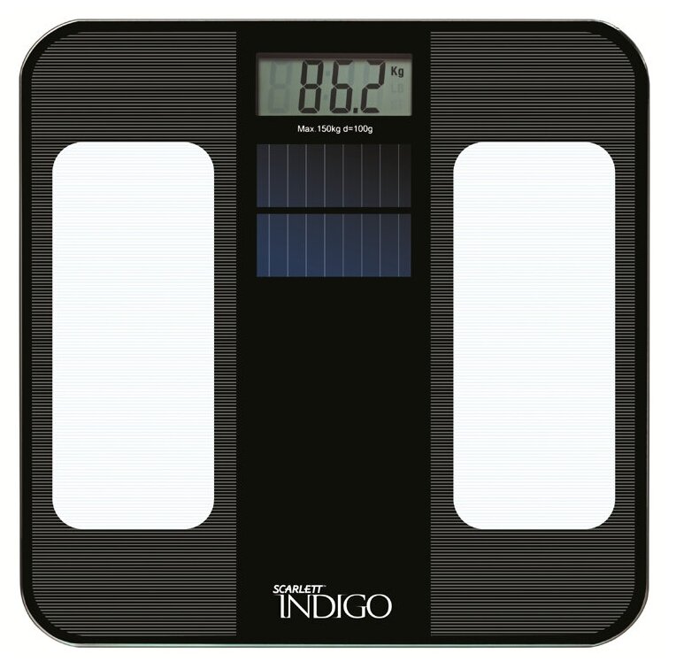 Device type: scales, scale type: electronic, maximum load: 150 kg, battery type: solar battery, measurement accuracy: 100 g, platform material: glass