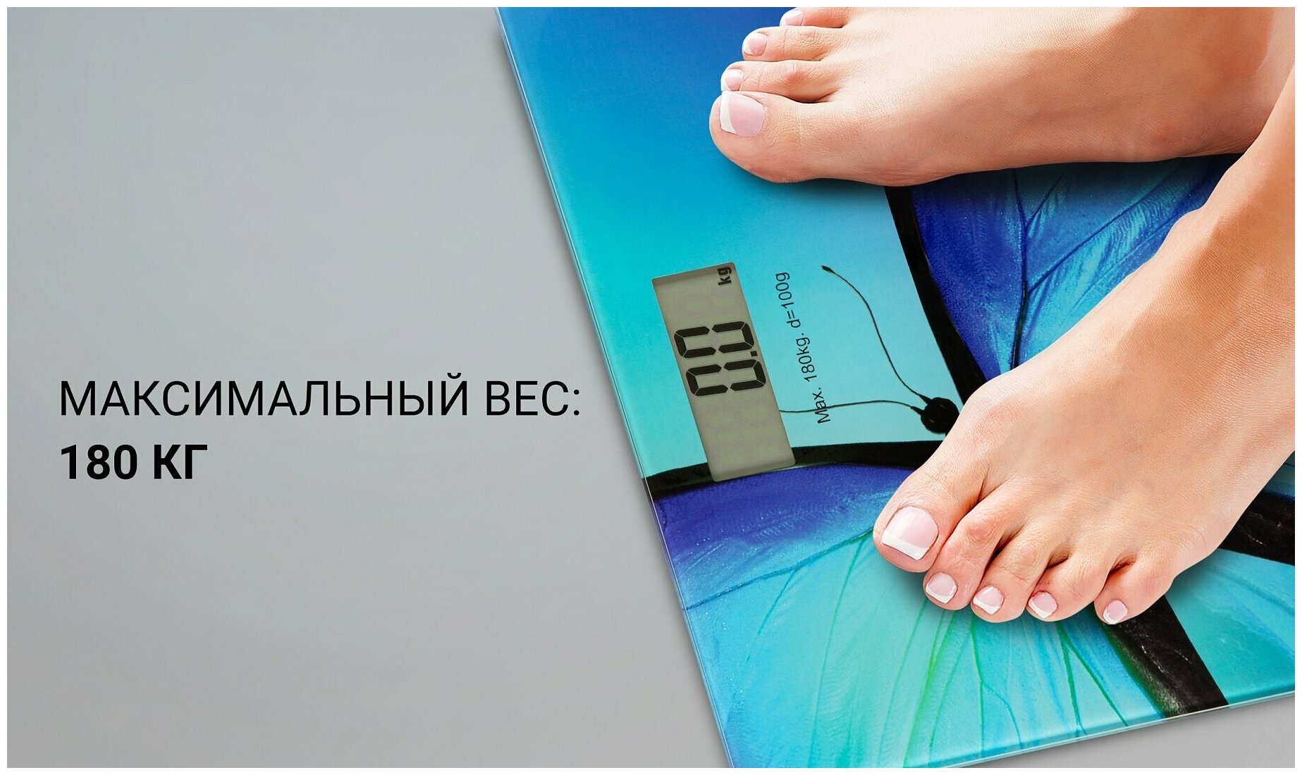 Device type: scales, scale type: electronic, additional functions: automatic switch on, automatic switch off, maximum load: 150 kg, battery type: CR2032, platform material: glass