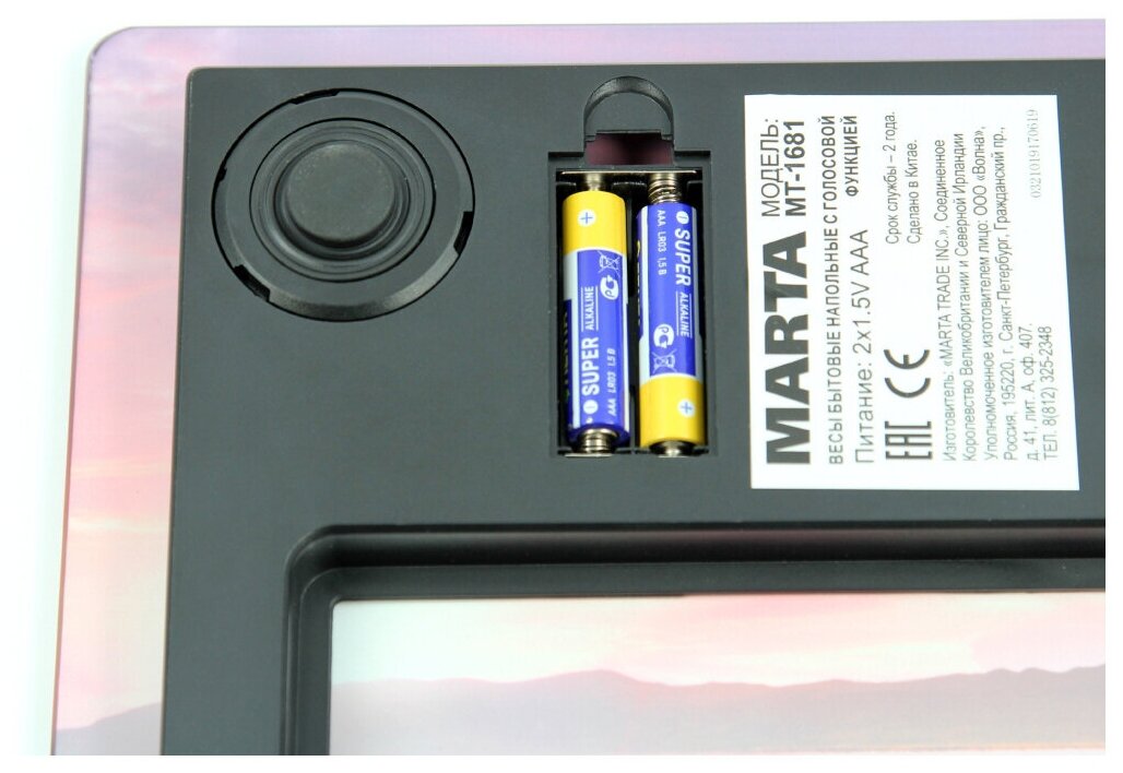 Description: Device type: scales, scale type: electronic, maximum load: 180 kg, battery type: AAA, measurement accuracy: 100 g, platform material: glass