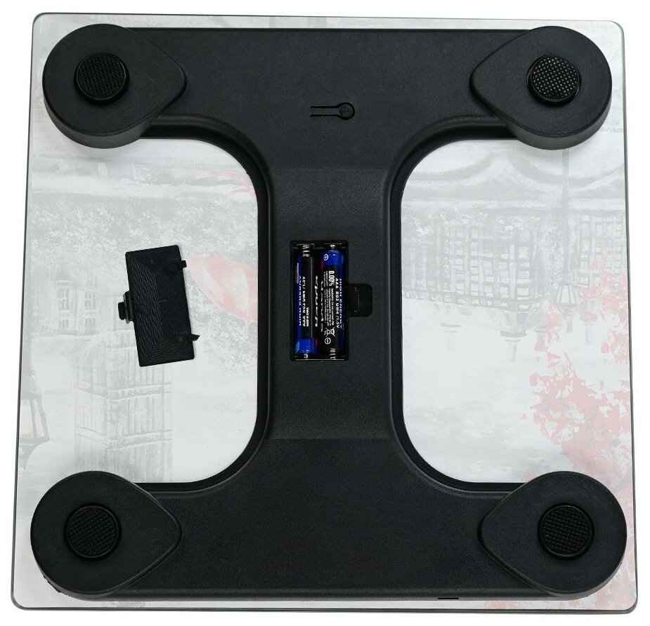 Device type: scales, scale type: electronic, additional functions: air temperature measurement, maximum load: 180 kg, battery type: AAA, measurement accuracy: 100 g, platform material: glass