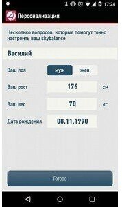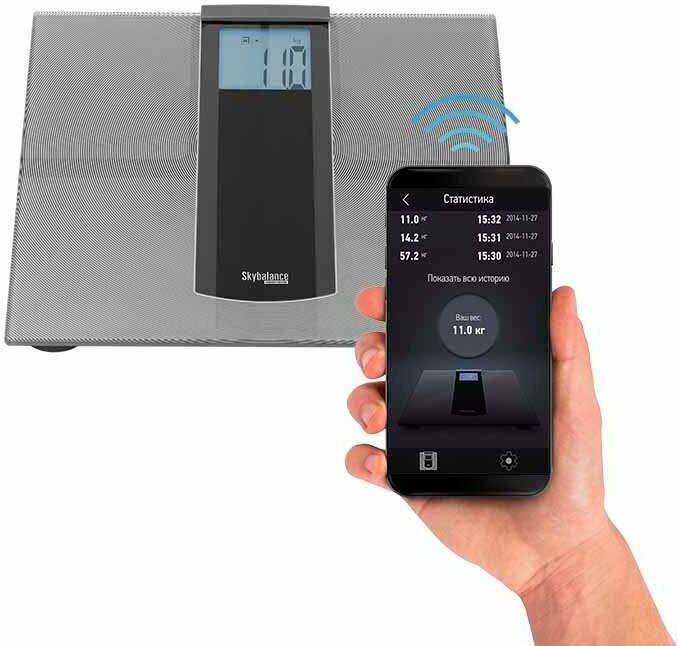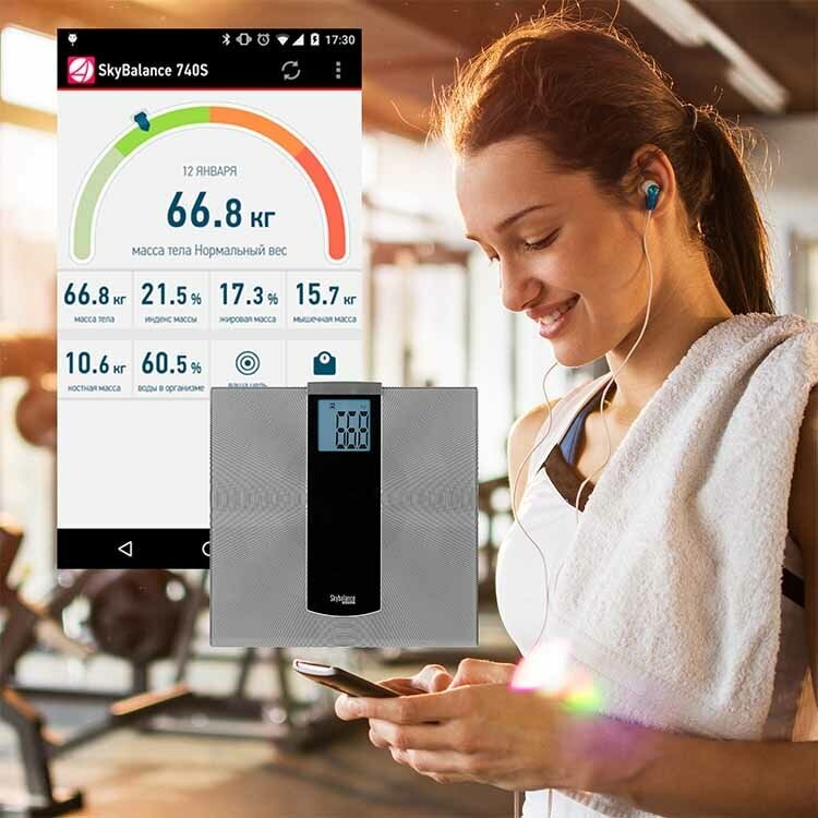Indication of the nature of the physique, the mode of additional measurements for athletes, synchronization with the Ready for Sky mobile application; battery charge indication; battery voltage: 4.5 V; display with luminous blue