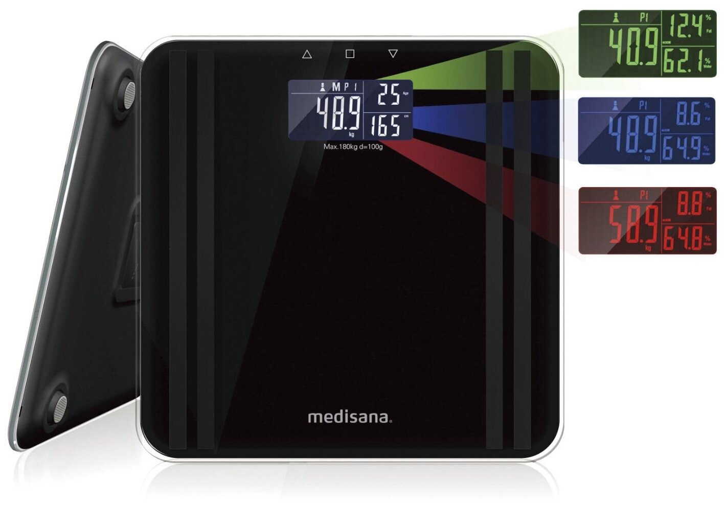 Device type: scales, type of scales: electronic, additional functions: determination of the proportion of water, determination of the proportion of adipose tissue, determination of the proportion of bone tissue, determination of the proportion of muscle t