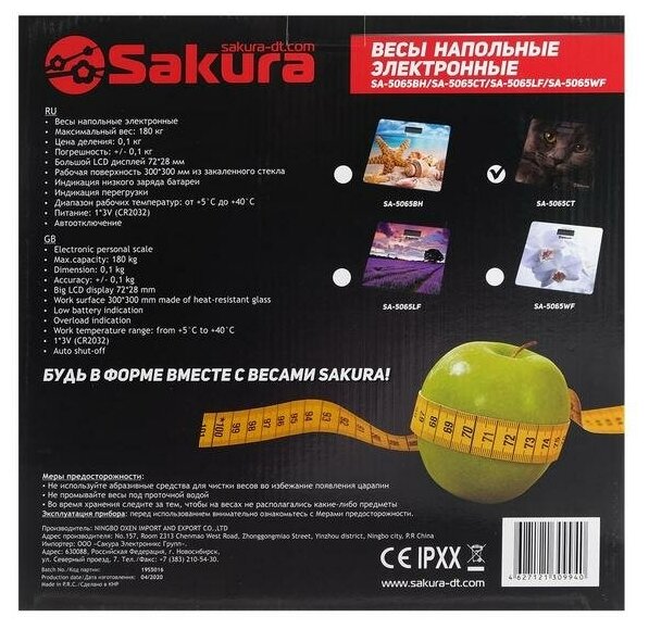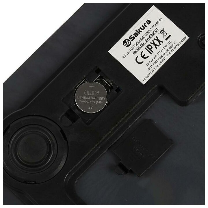Device type: scales, scale type: electronic, maximum load: 180 kg, battery type: CR2032, measurement accuracy: 100 g, platform material: glass
