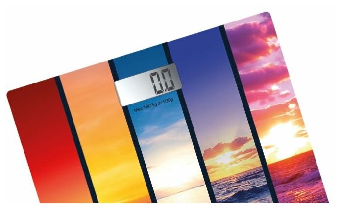 Device type: scales, scale type: electronic, maximum load: 180 kg, battery type: CR2032, measurement accuracy: 100 g, platform material: glass