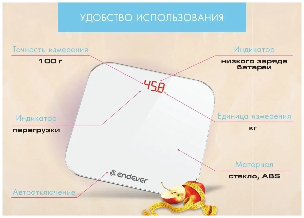 Device type: scales, scale type: electronic, maximum load: 180 kg, battery type: AAA, measurement accuracy: 100 g, platform material: glass