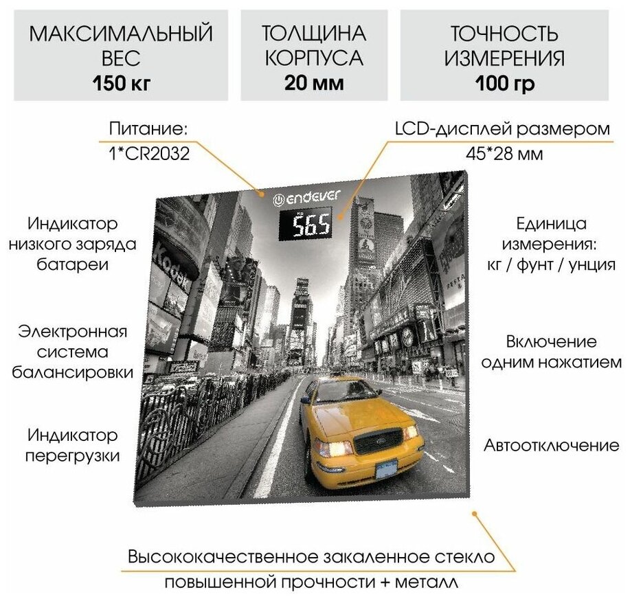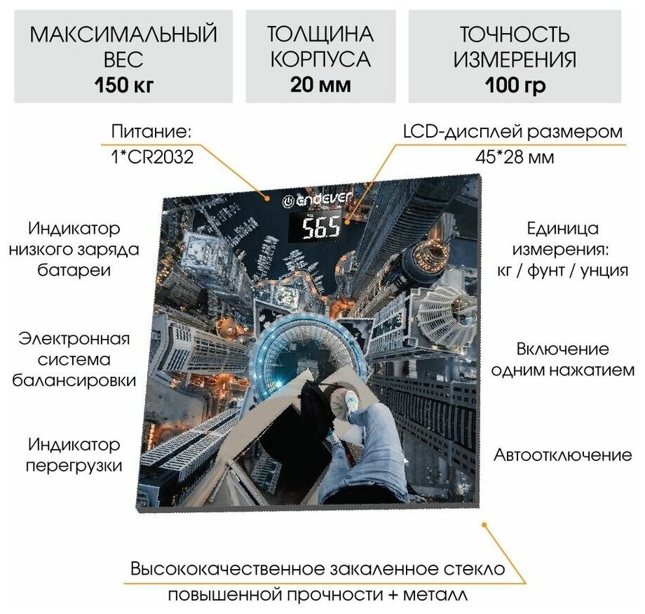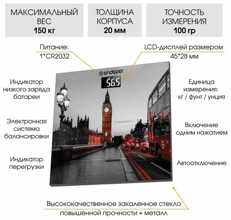 Device type: scales, scale type: electronic, additional functions: calculation of BMI BMI, maximum load: 150 kg, battery type: CR2032, measurement accuracy: 100 g, platform material: glass