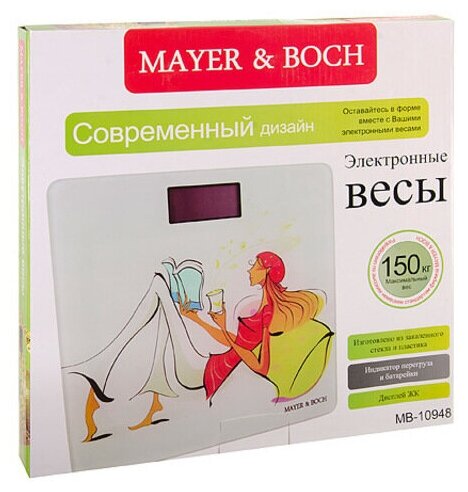 Description: Device type: scales, scale type: electronic, maximum load: 150 kg, measurement accuracy: 100 g, platform material: glass