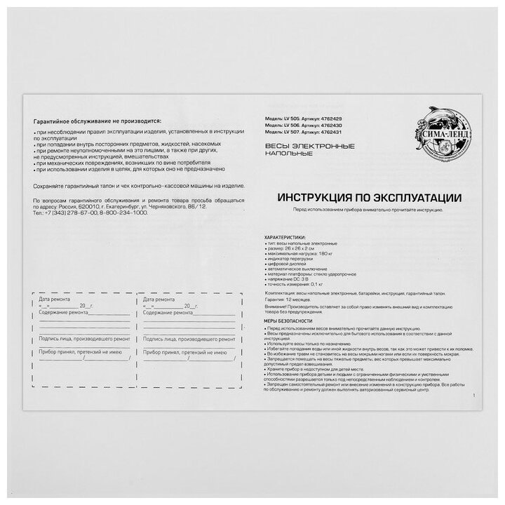 Device type: scales, scale type: electronic, maximum load: 180 kg, platform material: glass