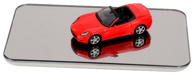 Mirror surface; battery charge indication; display with luminous symbols