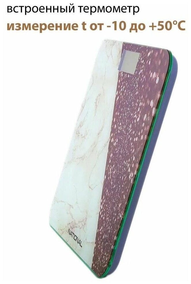 Device type: scales, scale type: electronic, additional functions: air temperature measurement, maximum load: 180 kg, battery type: AAA, measurement accuracy: 100 g, platform material: glass