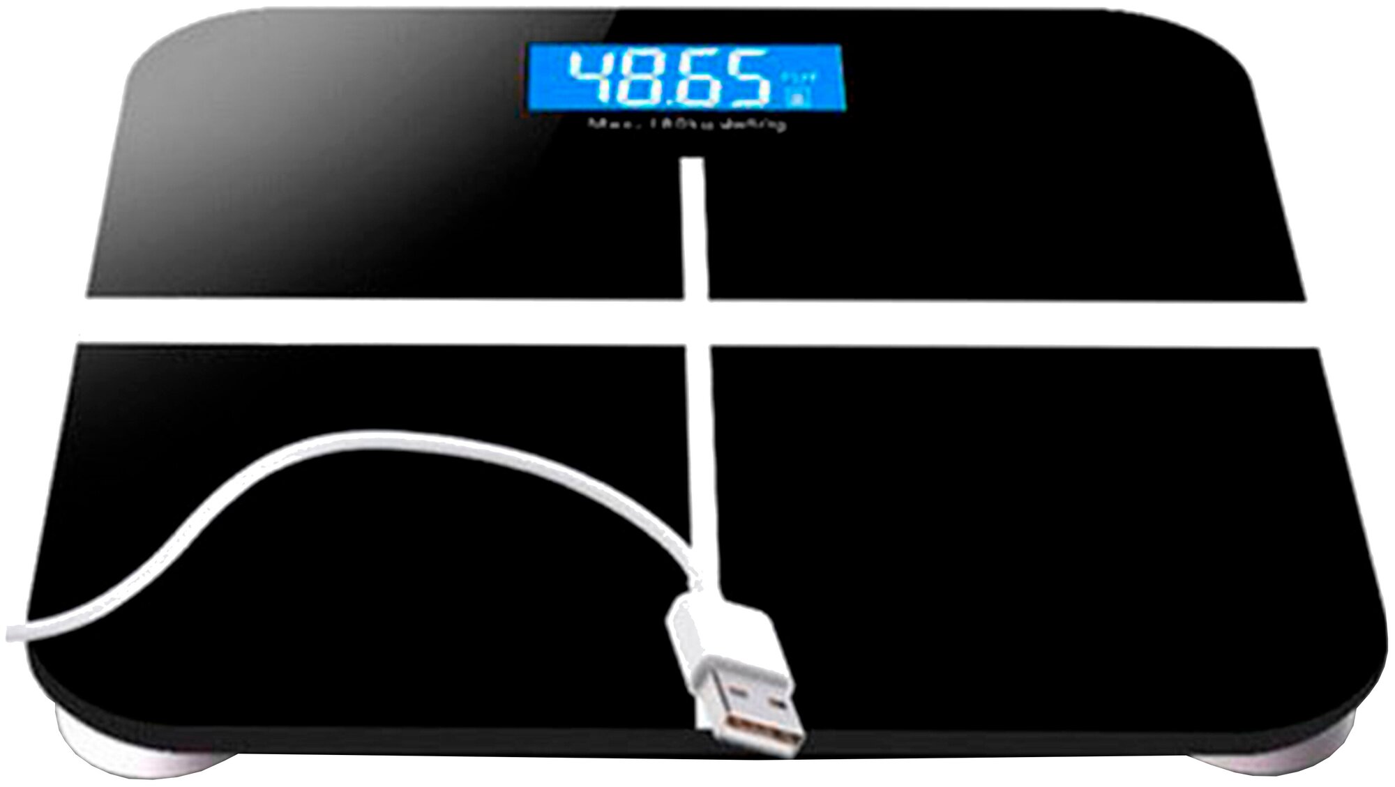 Charging via USB; time to full charge: 45 min; a full charge of the scales is enough for 1000 weighing sessions within 3-6 months; display with luminous symbols