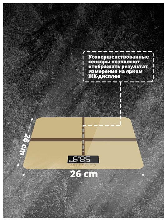 Device type: scales, scale type: electronic, additional functions: air temperature measurement, maximum load: 180 kg, battery type: built-in battery, measurement accuracy: 50 g, platform material