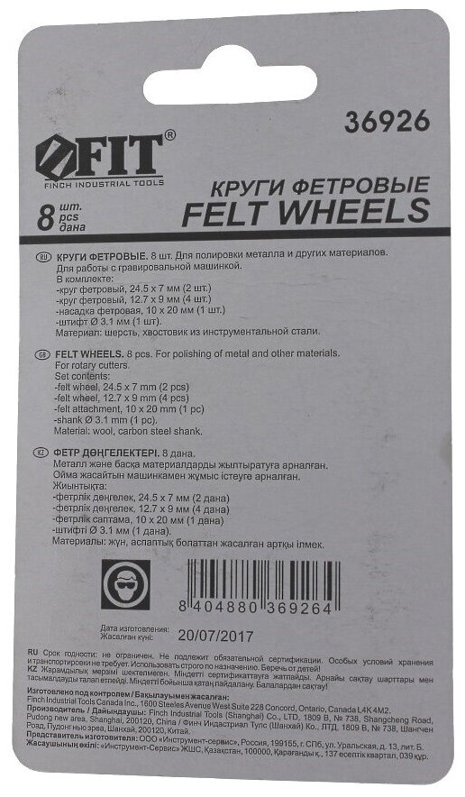Type: circle, purpose: polishing, work materials: wood, metal, plastic, set, number of items: 8 pcs., shank diameter: 3.10 mm