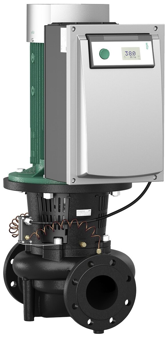 Minimum efficiency index MEI: 0.7; Max. working pressure: 16 bar; power consumption: 6.8 kW; differential pressure sensor; installation dimensions: branch pipe for suction. DNs side - DN 100, pressure connection side