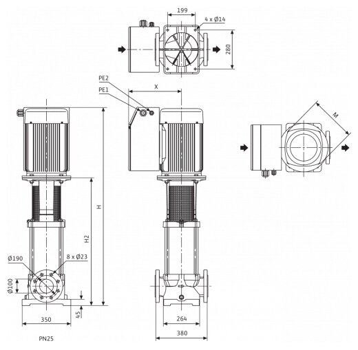 Mains connection - 3~380/400/460 V, 50/60 Hz, maximum operating pressure PN - 25 bar