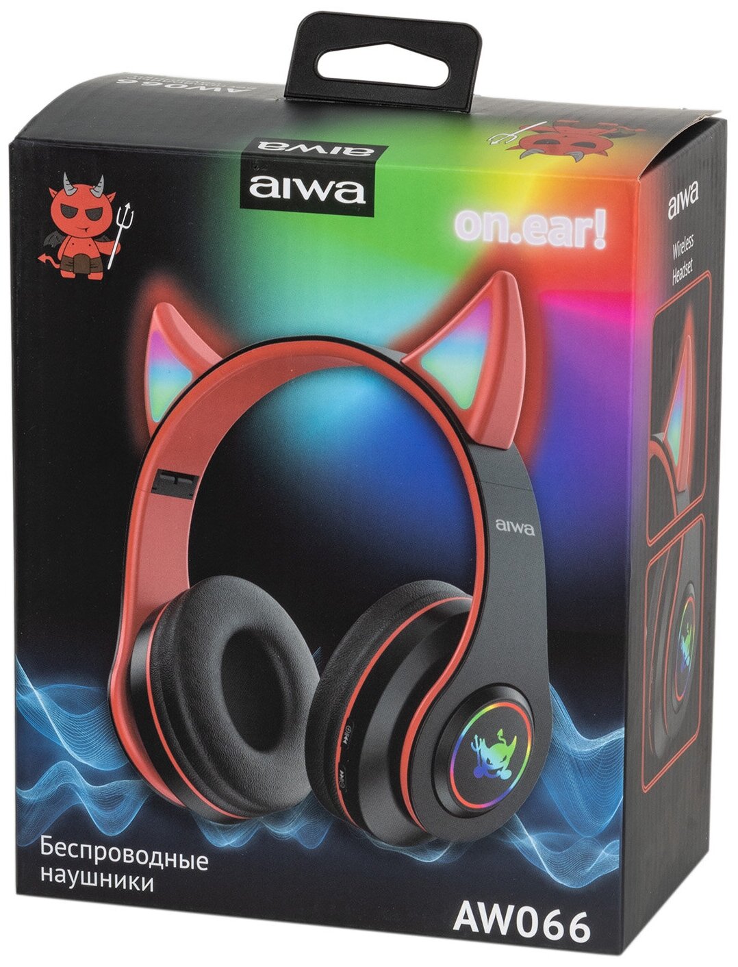AIWA Wireless Lighted, Foldable, Baby with Horns, Bluetooth 5.0, Up to 12 Hours, Mic, Audio-In, Card Slot