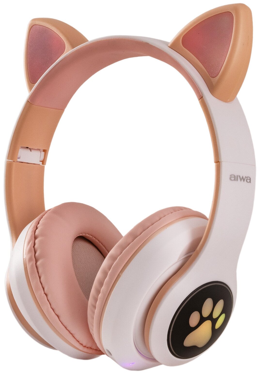 AIWA Wireless Light Up Foldable Kids Cat Ears Bluetooth 5.0 7-12 Hours Playback Microphone Audio In Card Slot