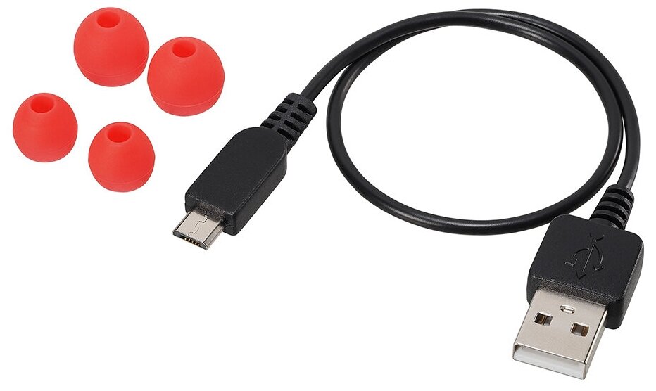 Bluetooth headset Audio-Technica ATH-CLR100BT, USB charging cable 30 cm, USB type A / Micro USB type B, ear tips sizes S, M and L, documentation