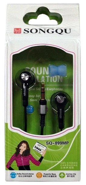 Design: in-ear, device type: wired headphones, design features: straight plug, plug connector: mini jack 3.5 mm