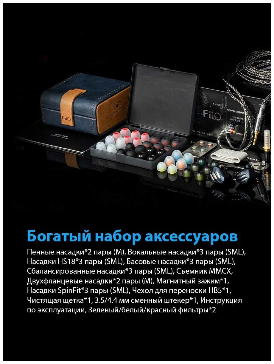 Headphones, cable with interchangeable plugs, 3.5 mm plug, 4.4 mm plug, storage case, filter set - 3 pcs, magnetic cable holder, foam M tips - 2 pcs, Vocal S/M/L tips - 3 pcs, HS18 S tips /M/L - 3 pcs, Bass S/M/L - 3 pcs,