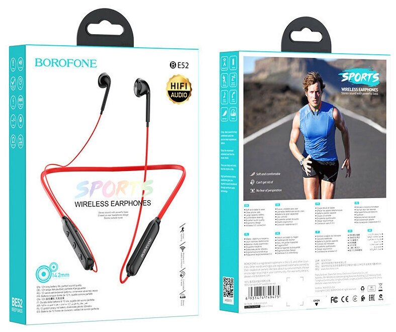 Borofone BE52 BT5.0/130mAh/12h Wireless Sports Headphones Red